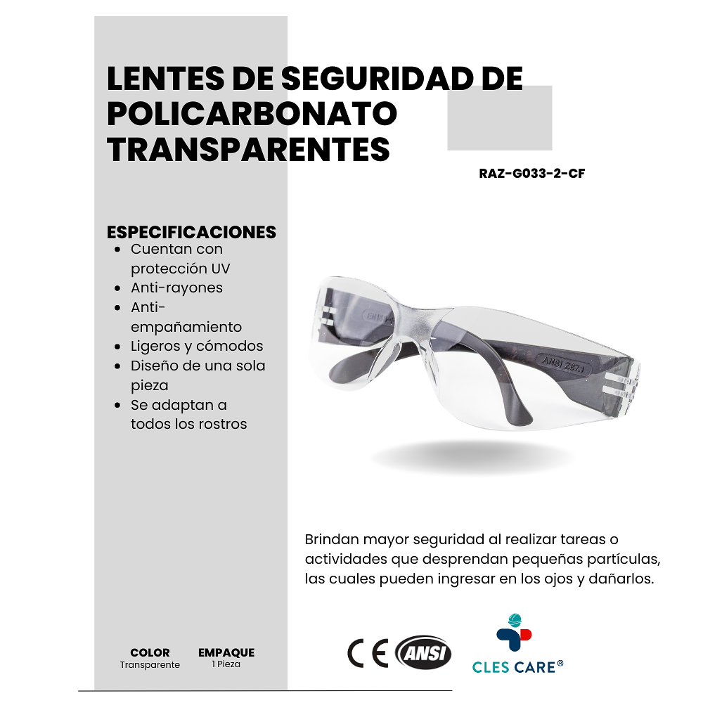 Lentes de Seguridad de Policarbonato Transparentes | 6 Piezas